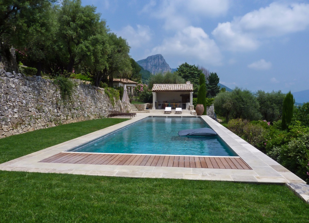 Территория - сад с оливковыми и лимонными деревьями, подогреваемый бассейн с соленой водой 18х5 м, летняя кухня с барбекю, терраса с обеденным столом и стульями, летний душ, теннисный корт, поле для петанка, большая парковка.