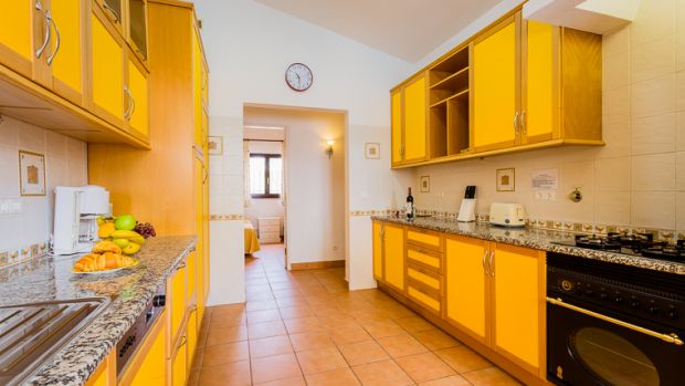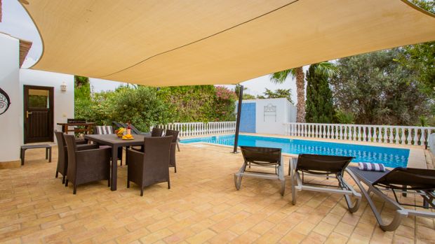 Вилла обставлена удобной мебелью. Ярко оформленная кухня хорошо оборудована, а в гостиной установлены удобные диваны. Из гостиной раздвижные двери ведут на террасу к бассейну, там же на территории есть тент над обеденной террасой.