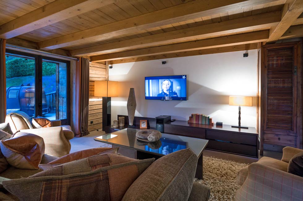 В шале - шикарные современные интерьеры. К услугам гостей сауна, массажный кабинет и гидромассажная ванна на открытом воздухе, а также две большие гостиные, одна из которых с гигантским плазменным телевизором и цифровыми спутниковыми каналами. Впечатляющая кухня открытой планировки - вы можете наблюдать с бокалом шампанского, как шеф-повар готовит свои шедевры для вашего ужина. Есть также кабинет с телефоном и факсом, конференц-залы для корпоративных групп. На первом этаже - подогреваемые стойки для ботинок, хорошо укомплектованный винный погреб. В цену включено питание.
