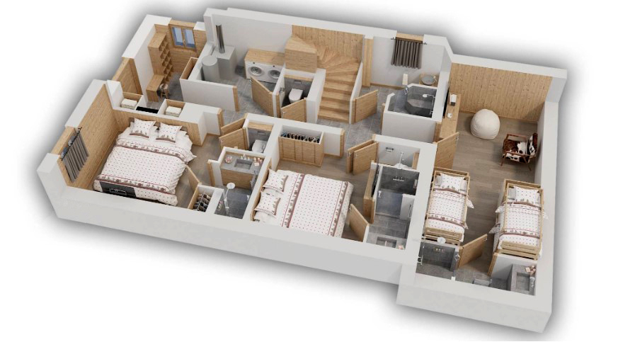 Краткое описание: Трехуровневое шале площадью 180 м2 для 8 взрослых и 4 детей на знаменитом курорте Мерибель, в районе Ле Раффорт. Это бывший старинный фермерский дом, великолепно отремонтированный, украшенный и отлично оборудованный, чтобы создать особое чувство благополучия и уюта. Его расположение в 410 метрах от лыжни Раффорт позволяет легко и быстро добраться до него. Гости могут пройти через деревню пешком или прокатиться на лыжах через сосны к шале.