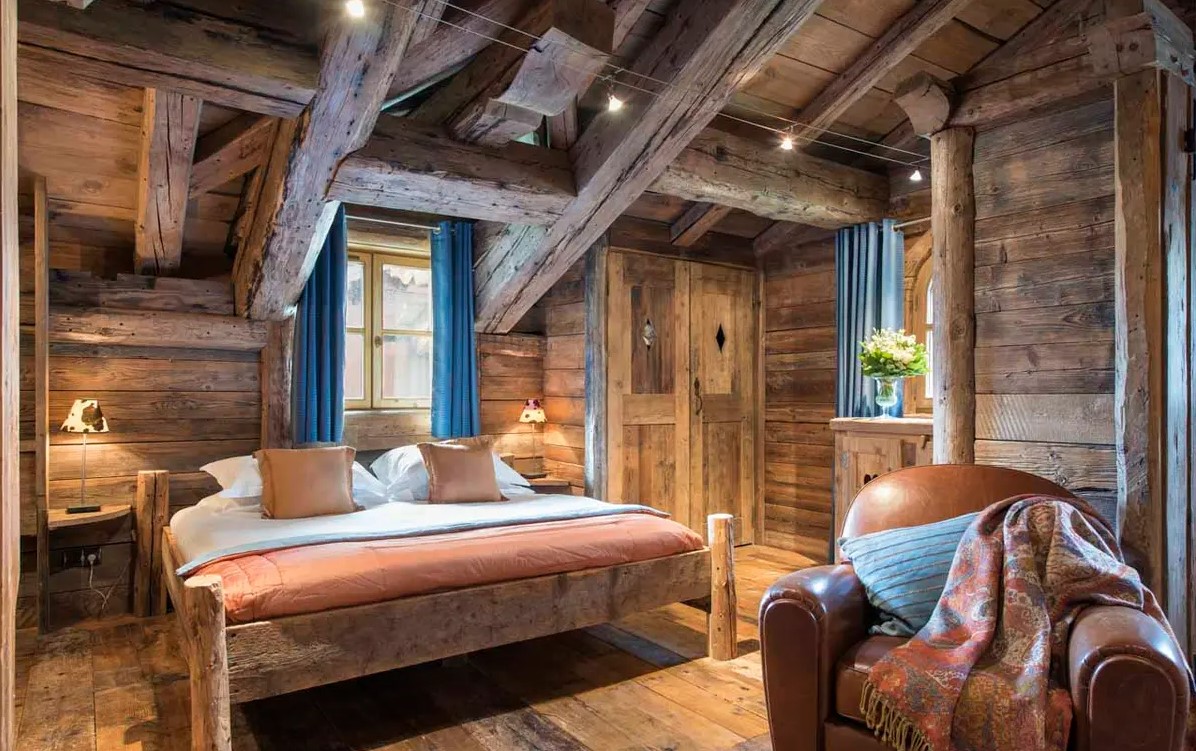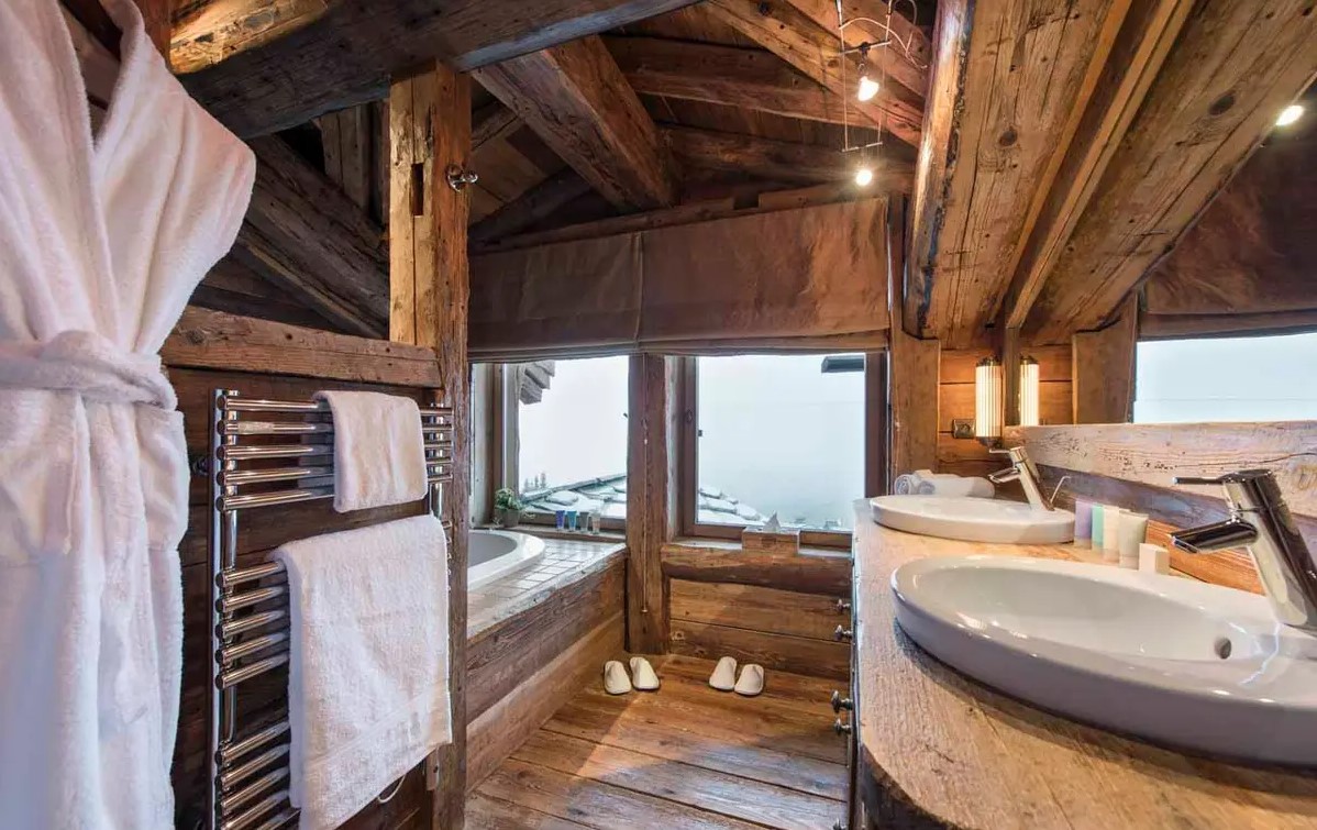 Шале вмещает до 12 человек, и все спальни изысканно обставлены, с ванными комнатами, тапочками и халатами, а также продуктами Aromatherapy Associates. В главной спальне есть собственный камин, плазменный телевизор и гардеробная, а из ванны открывается прекрасный вид на горы.