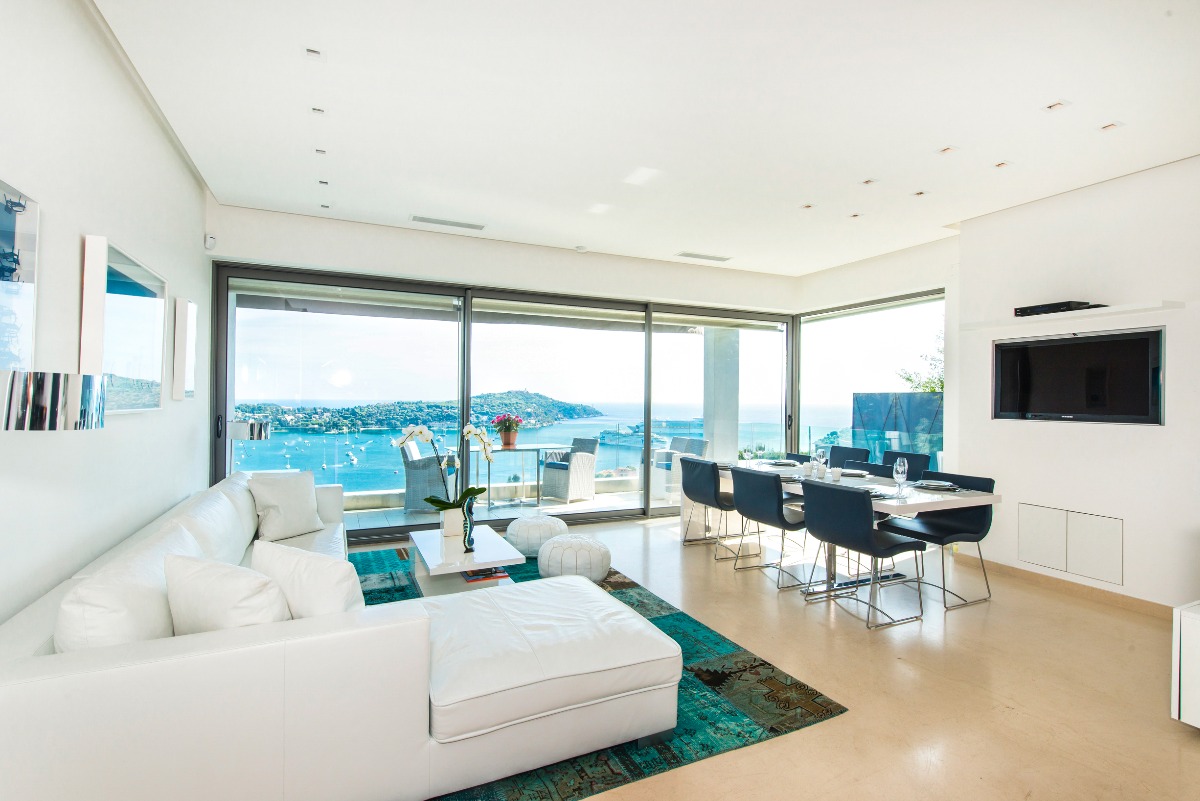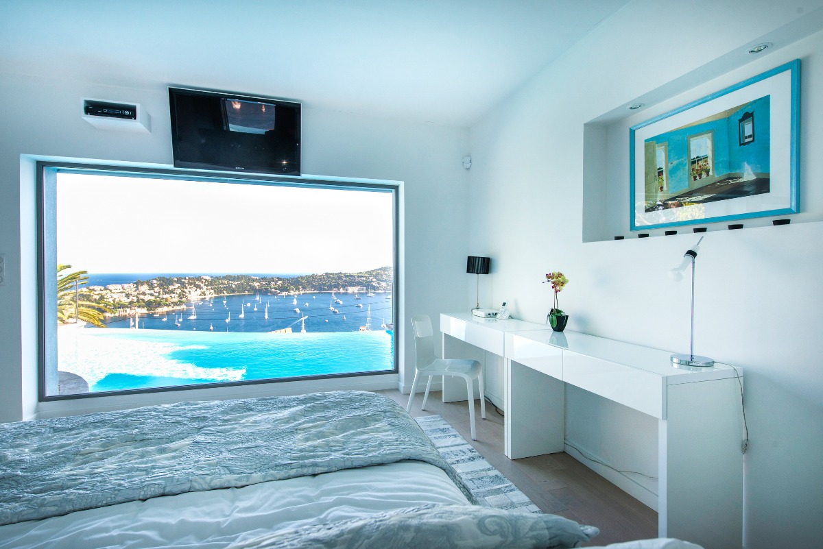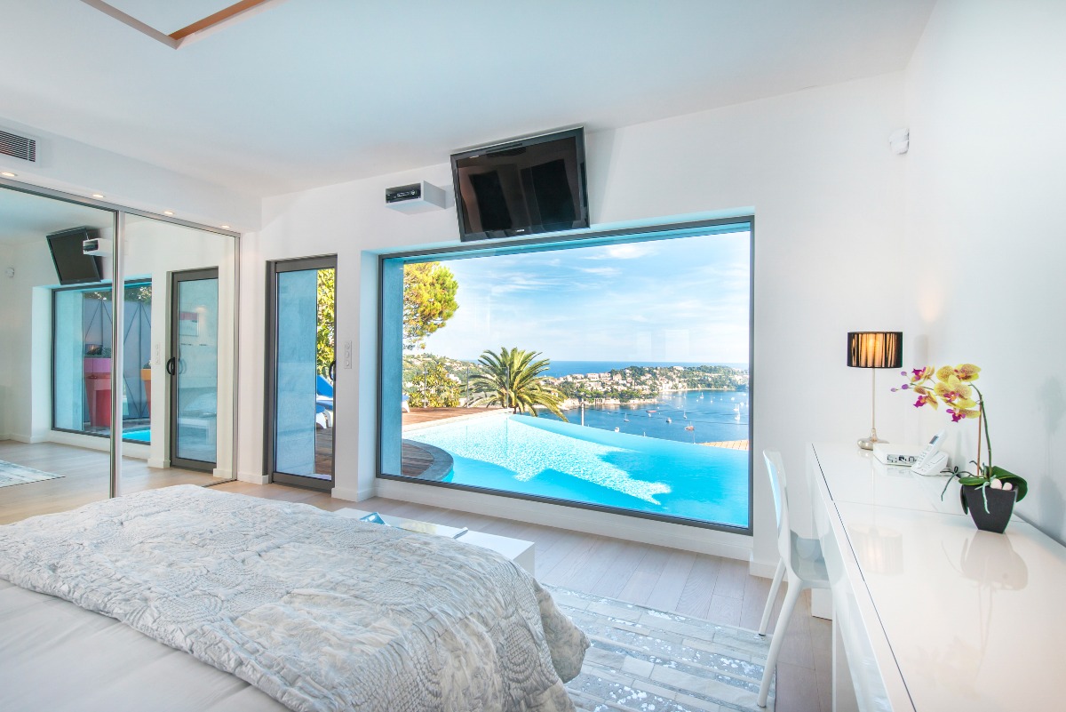 До моря 500 метров До песчаного пляжа 800 метров Вилла состоит: - гостиная - столовая - гостиная, совмещенная со столовой - отдельная кухня Спальни 4 - с двуспальной кроватью 4 Кол-во ванных комнат 4 - душевая кабина, умывальник, WC - 3 - ванна, умывальник, WC - 1 На вилле есть: Отопление/охлаждение объекта - Кондиционеры - Электрическое отопление Мультимедиа - ТВ (количество телевизоров) 6 - Спутниковые каналы - Stereo система - Домашний кинотеатр - Радио Кухня - Посуда, столовые приборы, проч. - Холодильник - Микроволновая печь - Стиральная машина - Посудомоечная машина - Утюг и гладильная доска - Кофеварка - Электрочайник - Тостер Коммуникации - WI-FI Аксессуары для детей - Детская кроватка по запросу Охранные системы - Сигнализация - Сейф Проживание с домашними животными - по запросу Территория: - Парковка на количество машин 4 - Сад - Терраса - Садовая мебель - Барбекю - Бассейн с подогревом - Шезлонги - Зонтик от солнца - Летний душ Краткое описание: Вилла уникально расположена в одном из самых популярных городов на Ривьере и, возможно, предлагает лучший вид, который может предложить «Золотой треугольник». С виллы открывается вид на гавань Вильфранш и оранжевые черепичные крыши старого города, Сен-Жан-Кап-Ферра, где находится одна из самых дорогих недвижимостей в мире, и обширный вид на Лазурный берег от Ниццы до Итальянской Ривьеры. Практически из каждой комнаты на вилле открывается прекрасный вид, так как вся южная стена полностью стеклянная и ведет к отдельным балконам.