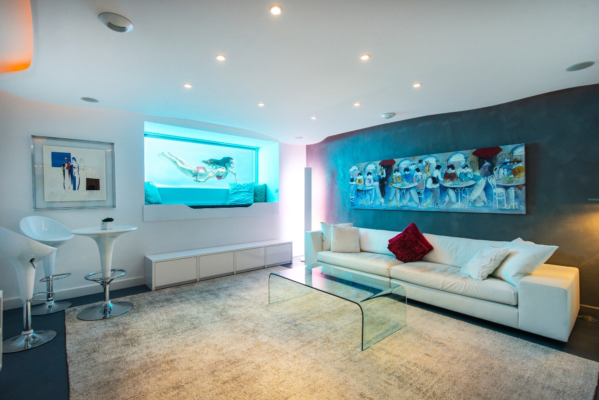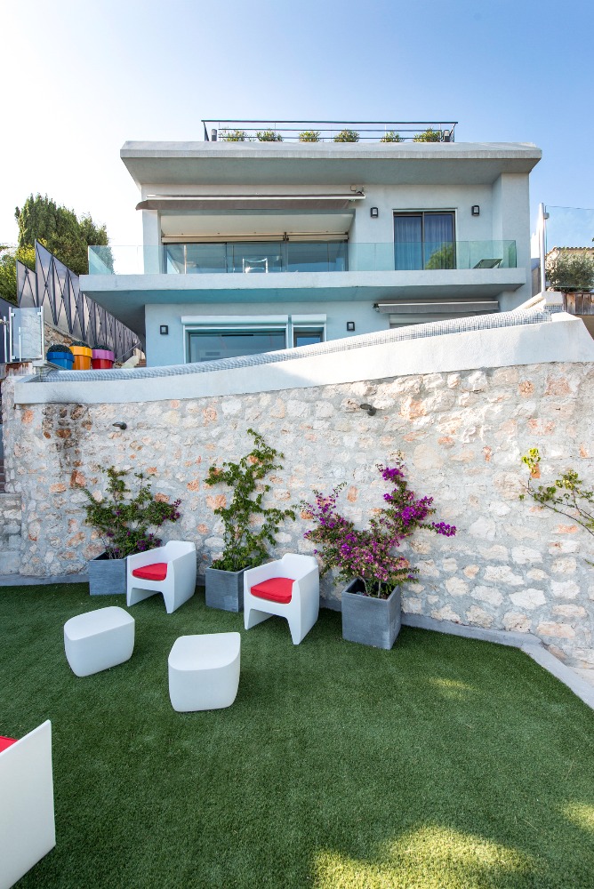 Дизайнерская мебель и серьезное искусство по всей вилле и снаружи.