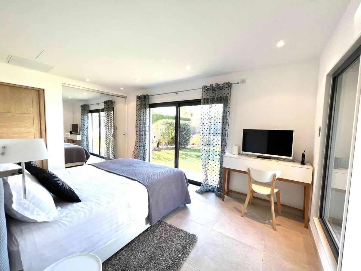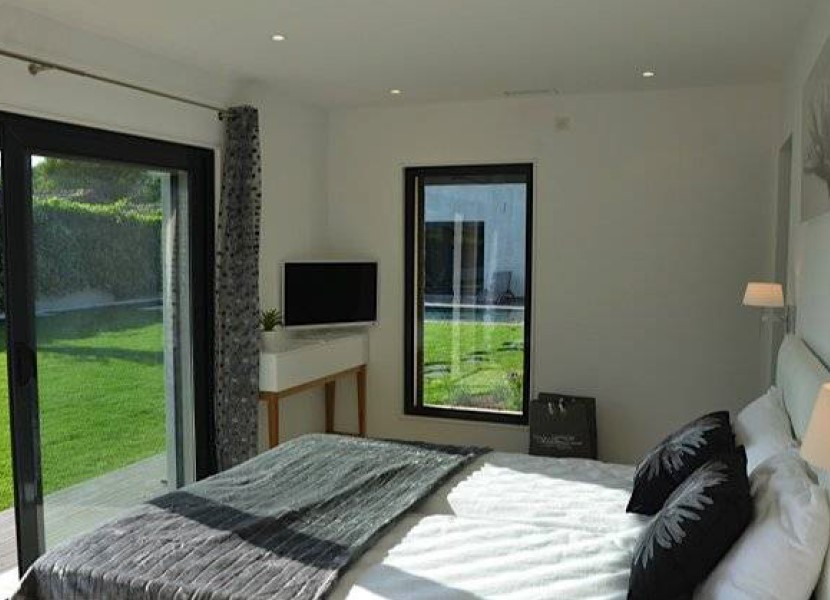 До моря 700 метров До песчаного пляжа 700 метров Вилла состоит: - гостиная - столовая - гостиная, совмещенная со столовой - кухня, совмещенная со столовой Спальни 4 - с двуспальной кроватью 4 Кол-во ванных комнат 4 - душевая кабина, умывальник, WC - 4 На вилле есть: Отопление/охлаждение объекта - Кондиционеры - Электрическое отопление Мультимедиа - ТВ (количество телевизоров) 2 Кухня - Посуда, столовые приборы, проч. - Холодильник - Микроволновая печь - Стиральная машина - Посудомоечная машина - Утюг и гладильная доска - Кофеварка - Электрочайник - Тостер Коммуникации - WI-FI Аксессуары для детей - Детская кроватка - Детская кроватка по запросу - Детский стульчик Охранные системы - Сигнализация Проживание с домашними животными - по запросу Территория: - Парковка на количество машин 2 - Сад - Терраса - Садовая мебель - Барбекю - Бассейн с подогревом - Шезлонги - Зонтик от солнца - Летний душ Краткое описание: Вилла ок. 140 м² с садом 830 м².