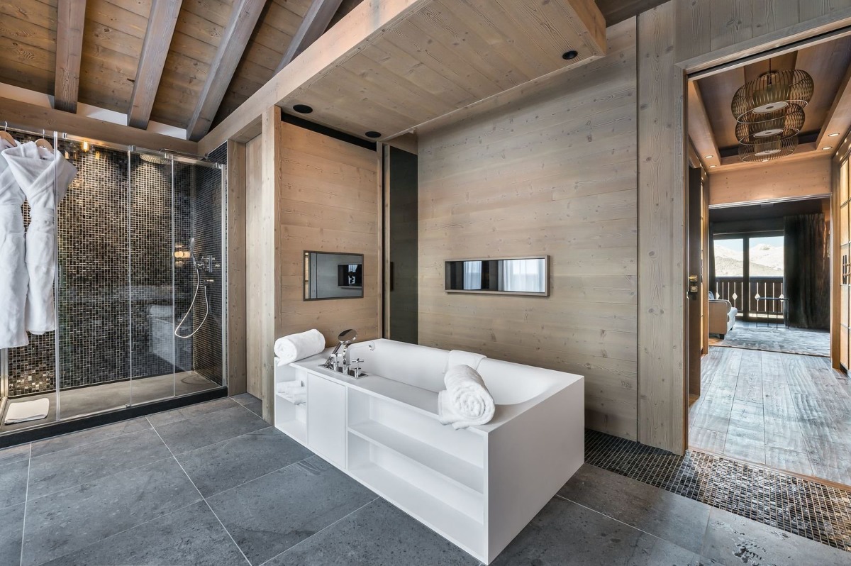 Основная гостиная просторная, с большой гостиной и столовой открытой планировки с теплым камином. В шале имеется полностью оборудованная кухня, где ваш личный шеф-повар каждое утро будет готовить завтрак, а вечером – изысканный ужин, приготовленный из лучших местных ингредиентов и блюд интернациональной кухни. Шале имеет шесть спален с ванными комнатами и большую главную спальню на верхнем этаже, обеспечивающую максимальную конфиденциальность.