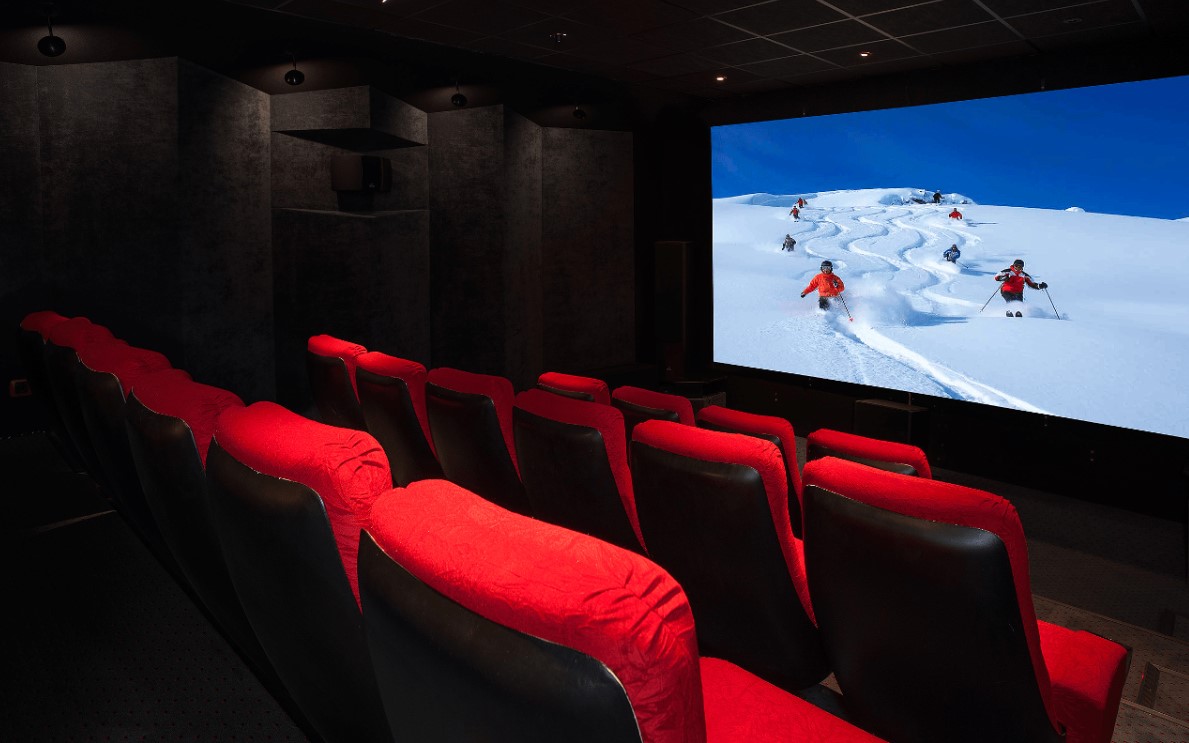 Также на цокольном этаже находится большой кинозал, в котором могут разместиться 22 гостя!!!, что позволяет всем вместе посмотреть любимый семейный фильм. Выбирайте один из 1500 фильмов кинотеки и наслаждайтесь! Прямо через коридор от кинозала находится фитнес-центр с широким выбором тренажеров для кардиотренировок и бодибилдинга, идеально подходящий для тех гостей, которые хотят продолжить физическую форму вне склонов!