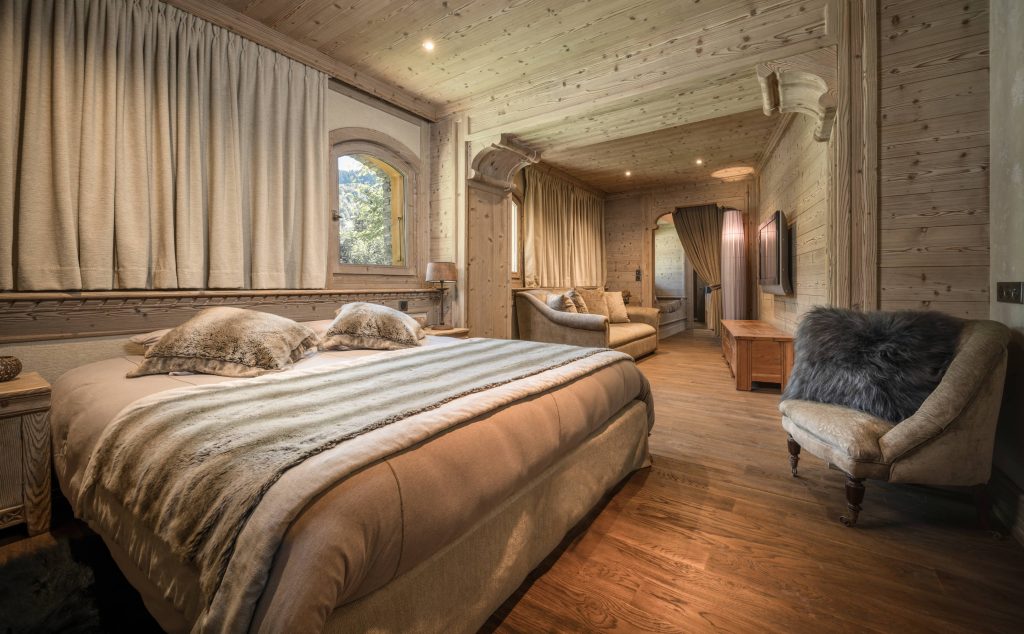 Всего в шале могут разместиться до 24 гостей. Хотя в шале всего 8 спален, есть несколько люксов, в которых достаточно места для размещения дополнительных гостей! Две главные спальни, Мерибель и Церматт, являются самыми большими спальнями в шале, каждая из которых имеет собственную гостиную, которую можно закрыть раздвижными стенами. Кроме того, при желании люксы «Мерибель» и «Валь Гардена» можно объединить в один большой люкс для больших семей. Также имеется общая спальня, в которой могут разместиться до 6 детей или подростков. В каждой спальне есть ванная комната, халаты, полотенца, тапочки и туалетно-косметические принадлежности.