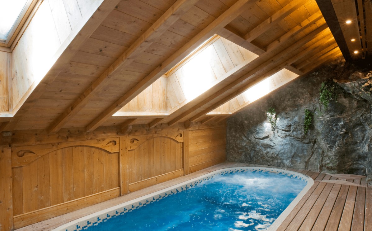 В дополнение к вышесказанному шале также предлагает широкий спектр оздоровительных услуг. К ним относятся массажный кабинет с итальянским душем, сауна на 4 человека и паровая баня на 8 человек! Не говоря уже о бассейне-спа размером 6 х 2,2 м с противотоком для купания и прямым выходом на открытую террасу.