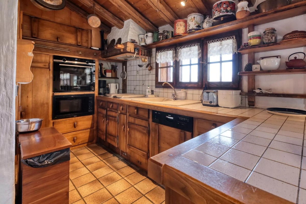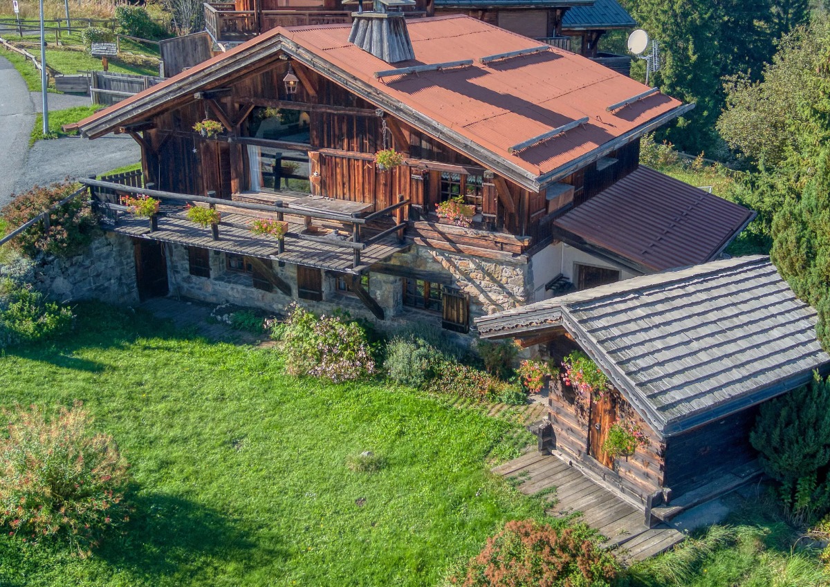 В шале присутствуют все атрибуты традиционного шале: фасады из дерева, потертого временем, интерьеры, дополненные традиционными деревянными каркасами и окнами со средниками, и даже традиционный мазот (постройка, служившая для хранения провизии семьи), расположенный в саду.