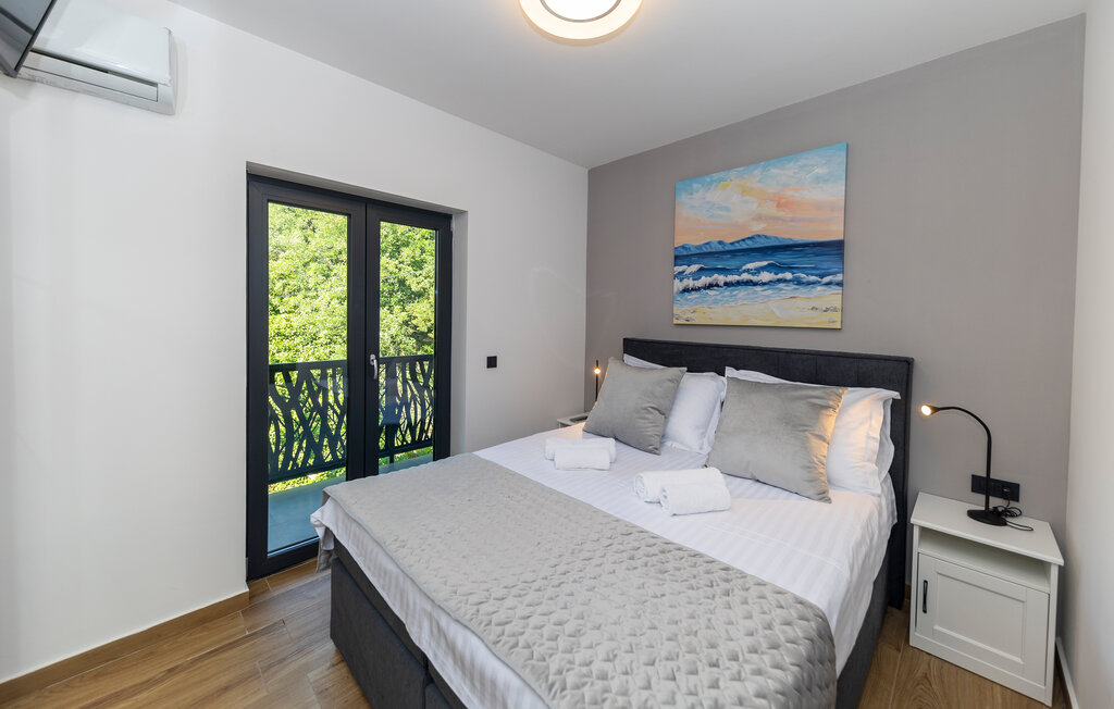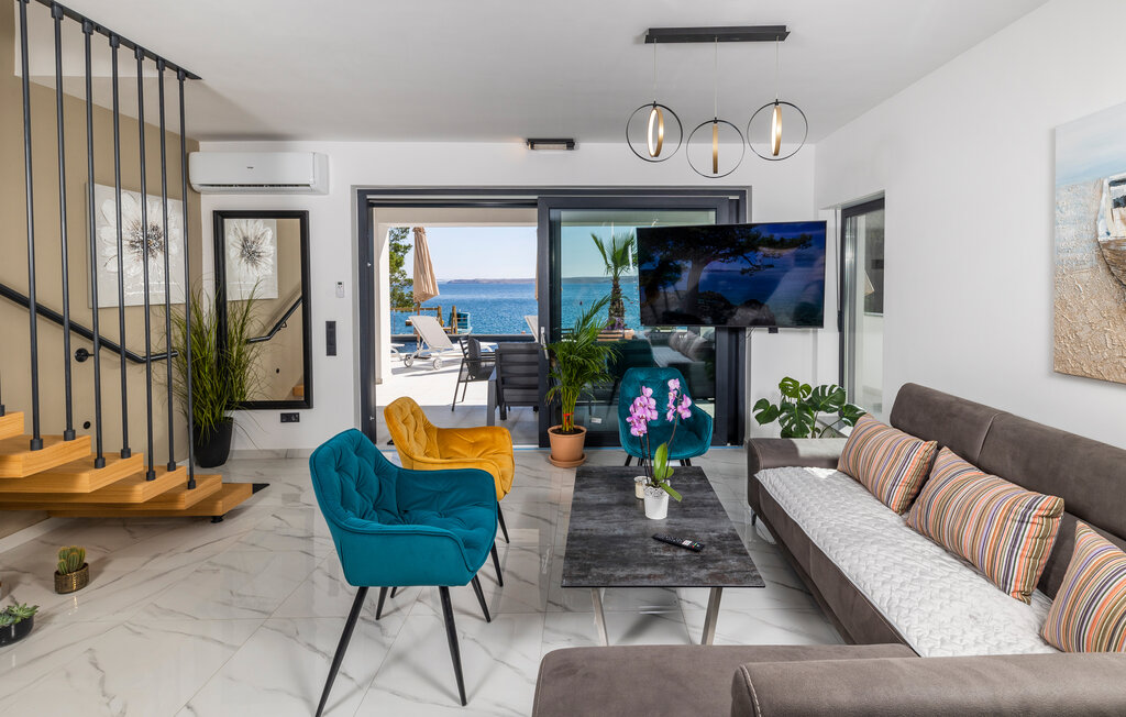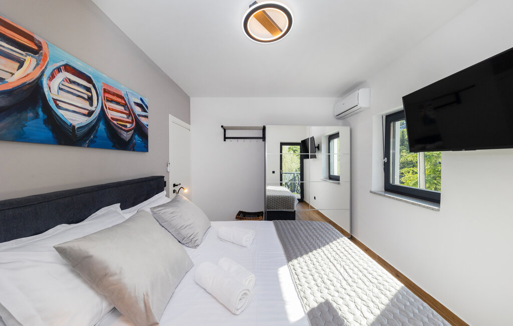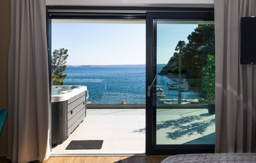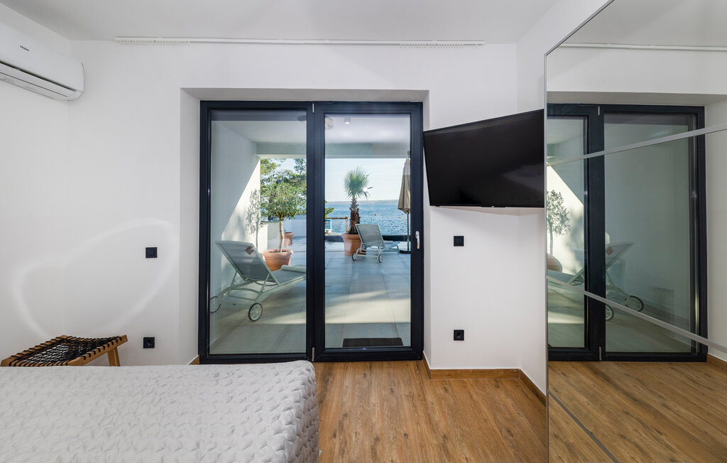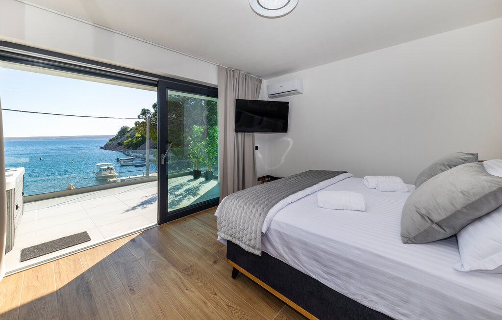 Внутреннее пространство оформлено в минималистичном стиле: светлые комнаты, качественная отделка, полностью оборудованная кухня и приватные спальни. С террас открывается прямой вид на воды Карлобага — здесь приятно проводить ранние утренние завтраки и вечерние ужины.