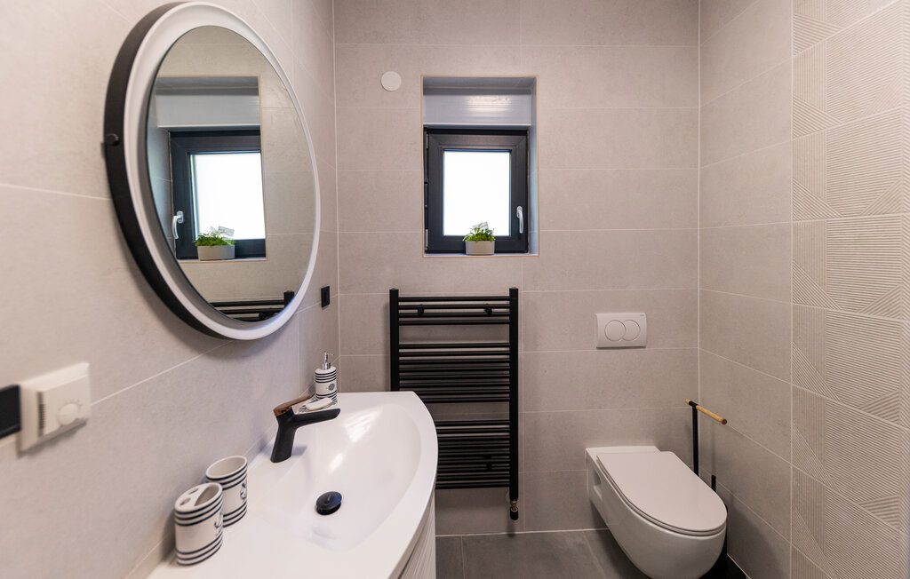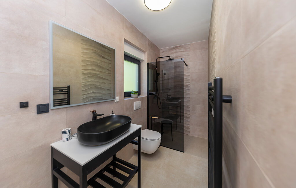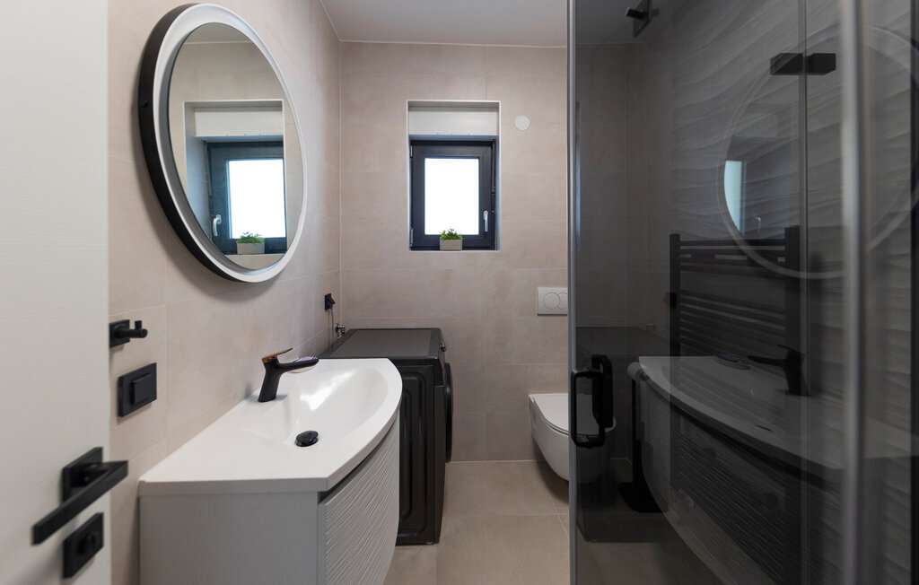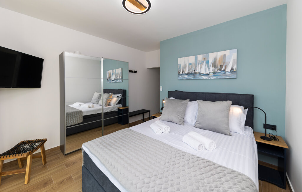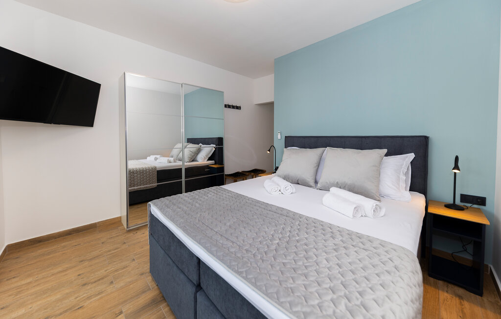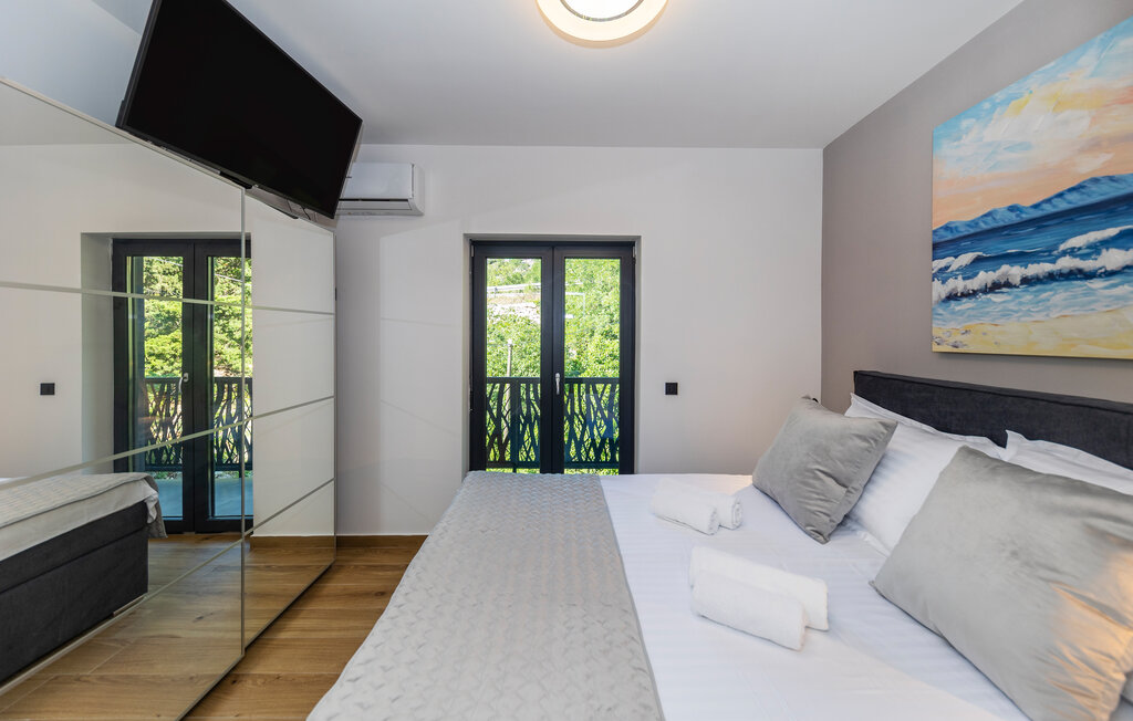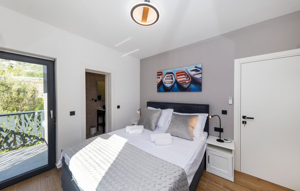Внутреннее пространство оформлено в минималистичном стиле: светлые комнаты, качественная отделка, полностью оборудованная кухня и приватные спальни. С террас открывается прямой вид на воды Карлобага — здесь приятно проводить ранние утренние завтраки и вечерние ужины.