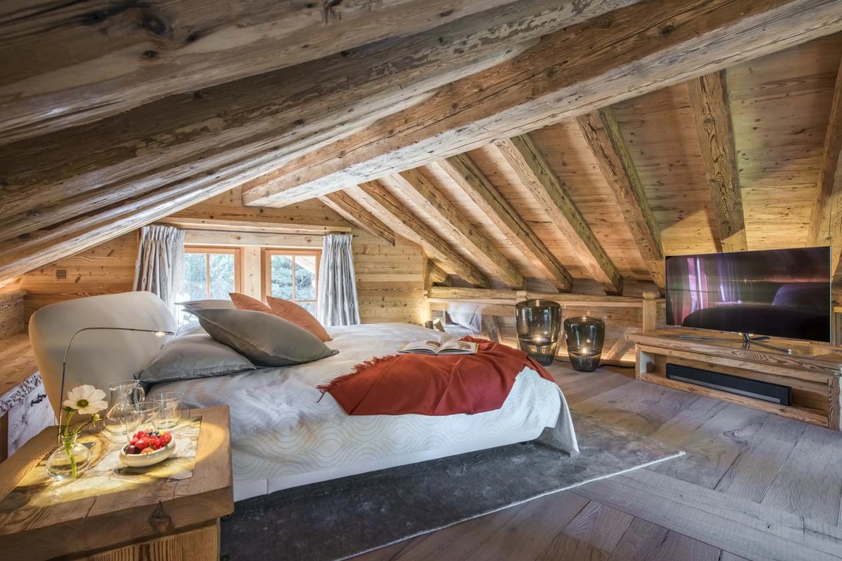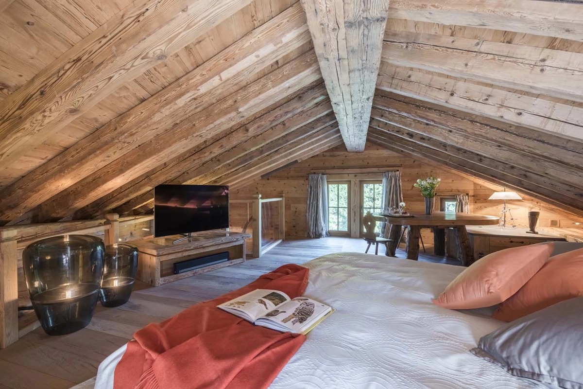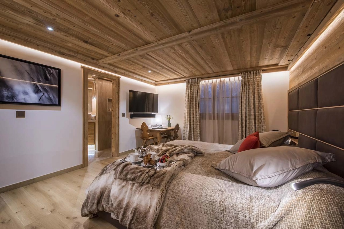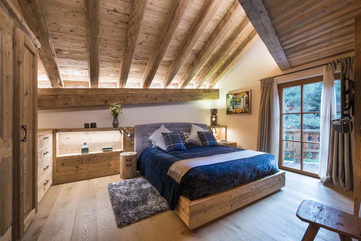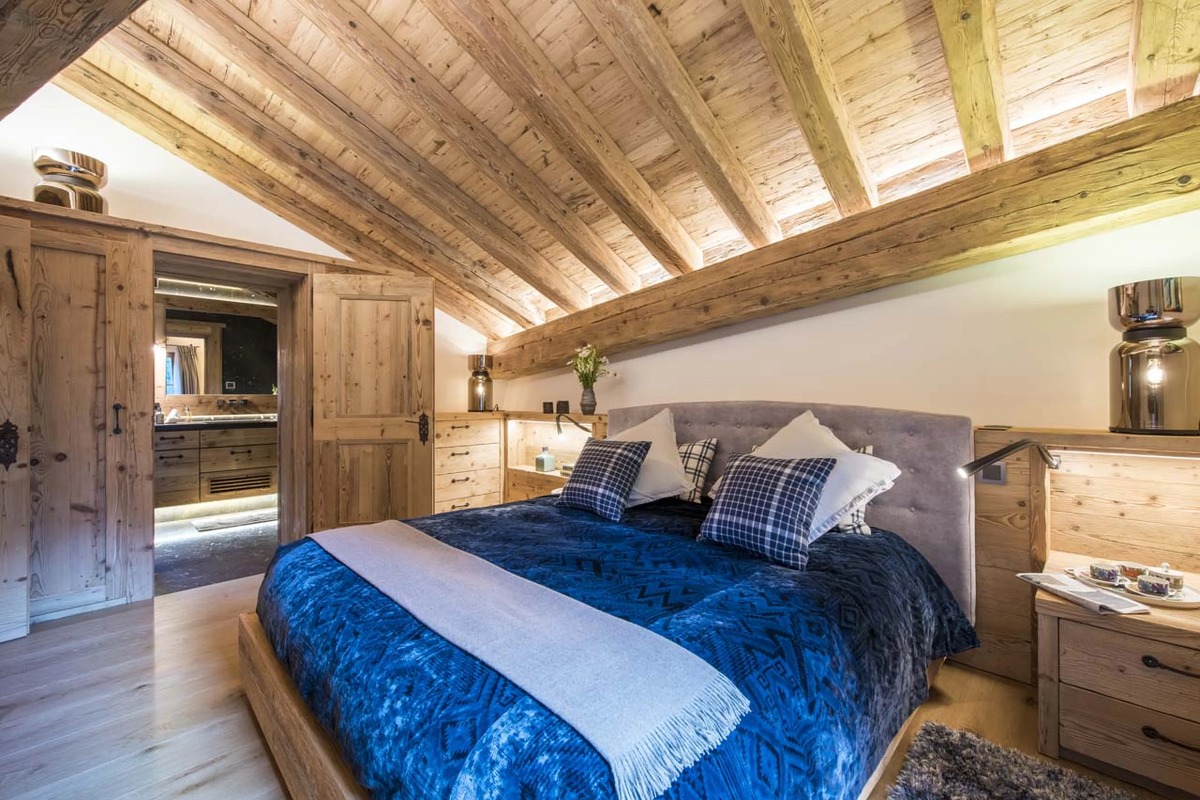 В шале могут разместиться до десяти взрослых и четырех детей в шести роскошных спальнях с ванными комнатами. Главная спальня, расположенная под скатом крыши, включает в себя просторную гардеробную и ванную комнату. Три дополнительные двухместные спальни также оборудованы собственными ванными комнатами с ванной или душем. В шале также есть две спальни с двухъярусными кроватями — одна с двуспальными кроватями, а другая предназначена для детей — обе с собственными душевыми комнатами. Еще одна спальня с ванной комнатой доступна для персонала.