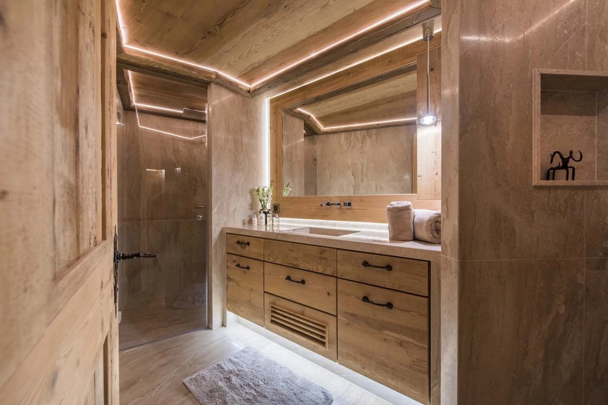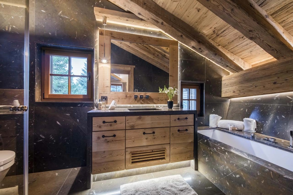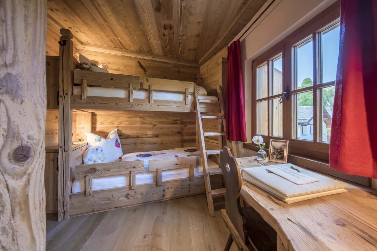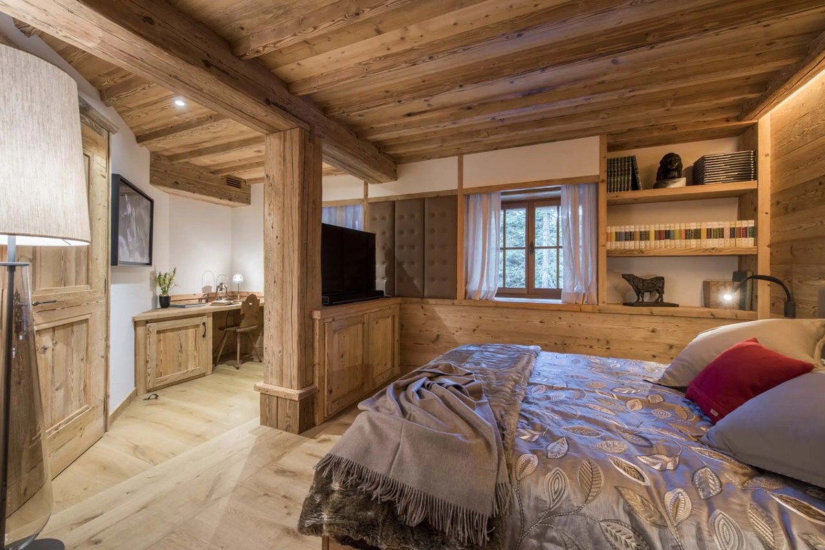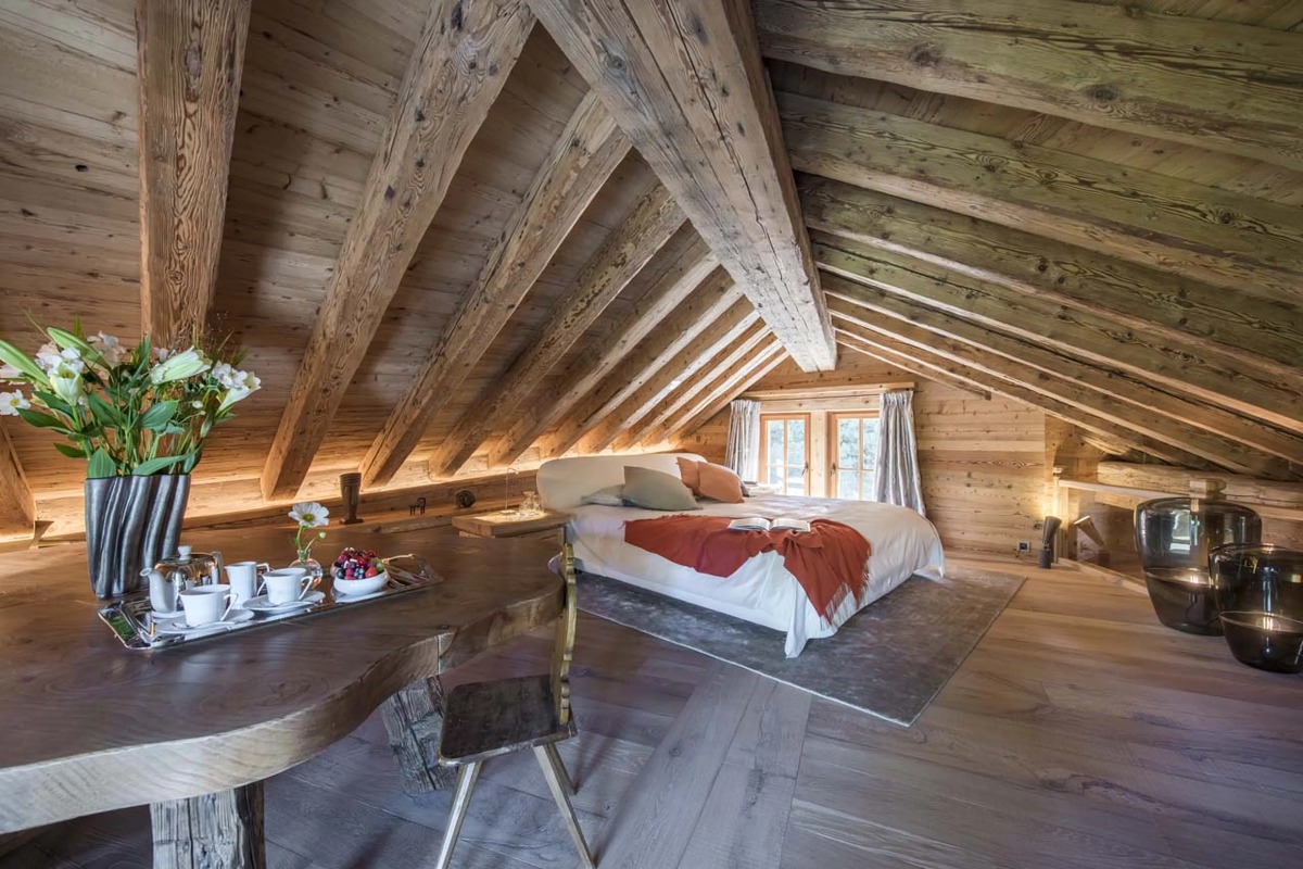 В шале могут разместиться до десяти взрослых и четырех детей в шести роскошных спальнях с ванными комнатами. Главная спальня, расположенная под скатом крыши, включает в себя просторную гардеробную и ванную комнату. Три дополнительные двухместные спальни также оборудованы собственными ванными комнатами с ванной или душем. В шале также есть две спальни с двухъярусными кроватями — одна с двуспальными кроватями, а другая предназначена для детей — обе с собственными душевыми комнатами. Еще одна спальня с ванной комнатой доступна для персонала.