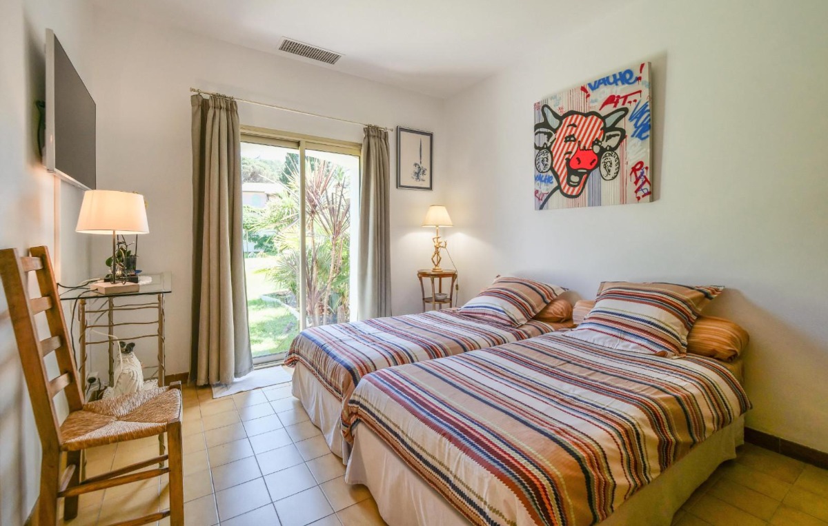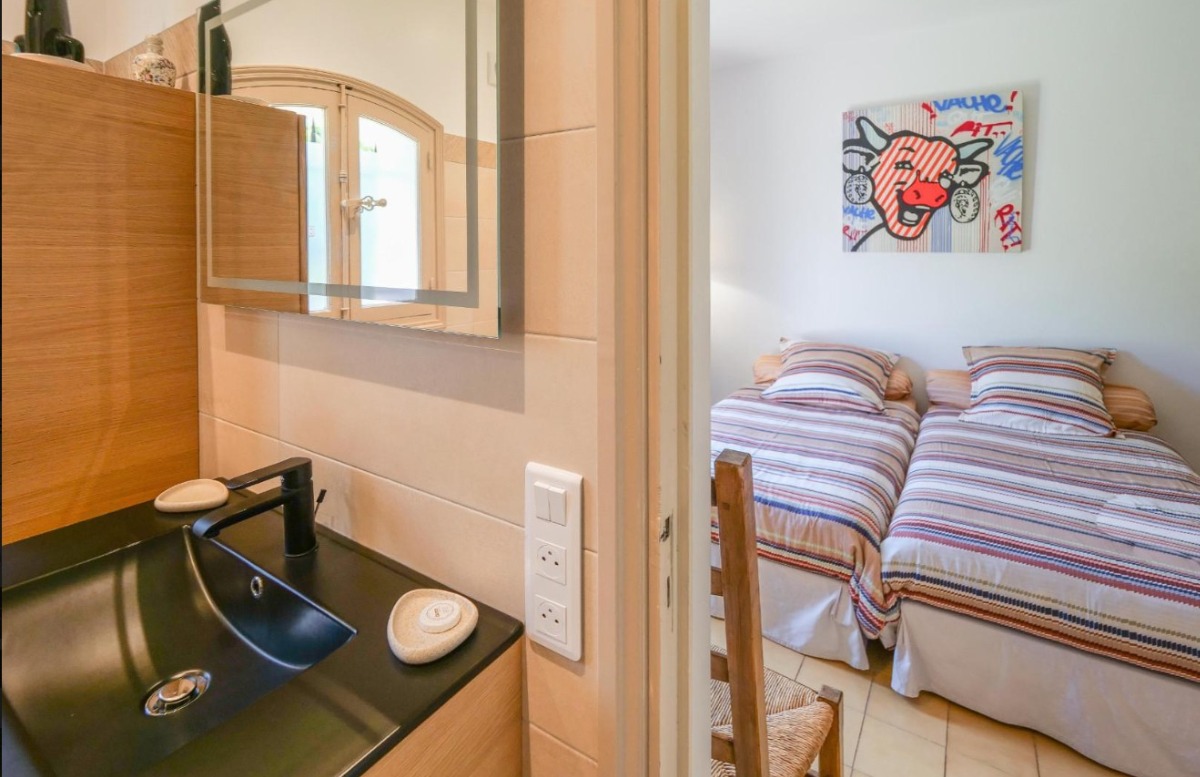 До моря 150 метров До магазина 300 метров До ресторана 300 метров До автобусной остановки 100 метров До аэропорта Nizza 90 километров Вилла состоит: - гостиная - столовая - гостиная, совмещенная со столовой - кухня, совмещенная со столовой Спальни 4 - с двуспальной кроватью 3 - с двумя односпальными кроватями 1 Кол-во ванных комнат 4 - душевая кабина, умывальник, WC - 3 - ванна, умывальник, WC - 1 На вилле есть: Отопление/охлаждение объекта - Кондиционеры - Камин - Электрическое отопление Мультимедиа - ТВ (количество телевизоров) 1 - Спутниковые каналы Кухня - Посуда, столовые приборы, проч. - Холодильник - Микроволновая печь - Стиральная машина - Посудомоечная машина - Утюг и гладильная доска - Кофеварка - Электрочайник - Тостер Коммуникации - WI-FI Аксессуары для детей - Детская кроватка - Детская кроватка по запросу - Детский стульчик Охранные системы - Сигнализация Проживание с домашними животными - по запросу Территория: - Парковка на количество машин 2 - Сад - Терраса - Садовая мебель - Барбекю - Бассейн - Шезлонги - Зонтик от солнца - Летний душ Краткое описание: Очаровательная вилла в Сен-Тропе, оборудованная 4 спальнями с кондиционерами и собственными ванными комнатами.
