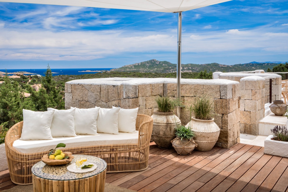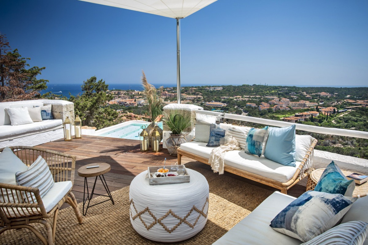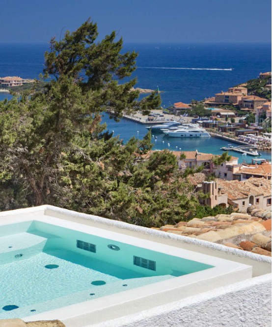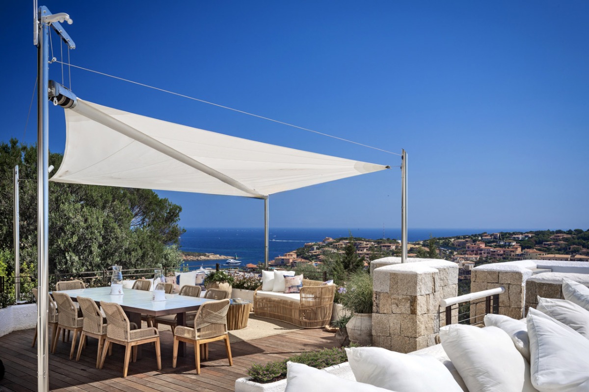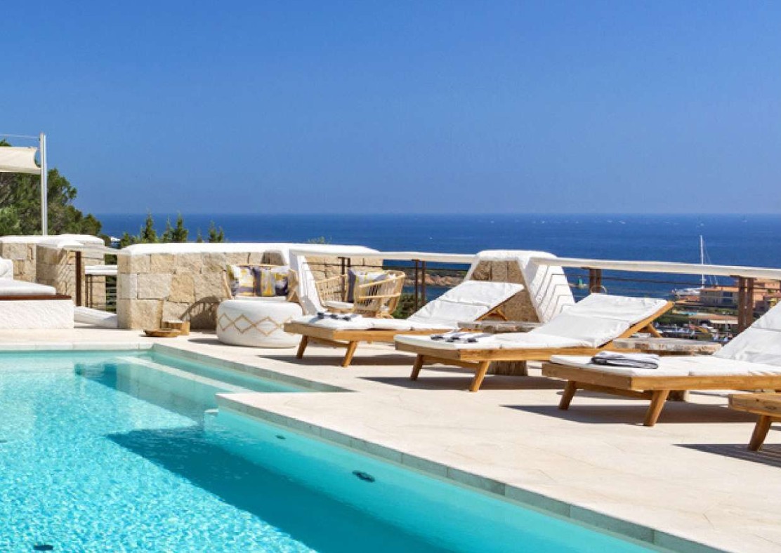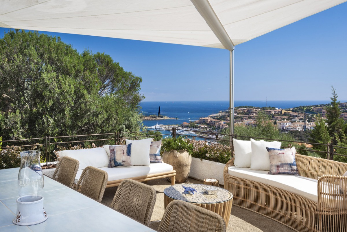 Это впечатляющая резиденция, откуда открывается непрерывный панорамный вид на профиль Порто-Черво: от элегантной марины с белоснежными яхтами до престижных жилых кварталов, утопающих в зелени и солнечном свете Коста-Смеральда.