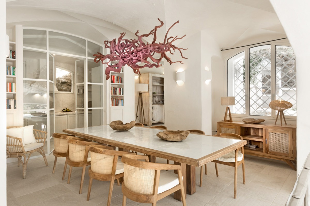 Светлая обеденная зона с кухней открытой планировки органично соединена с гостиной, оборудованной системой домашнего кинотеатра. Кухня полностью укомплектована техникой премиум-класса и рассчитана как на повседневное использование, так и на обслуживание приёмов. Зона барбекю на одной из террас создаёт идеальное пространство для неформальных ужинов на свежем воздухе.