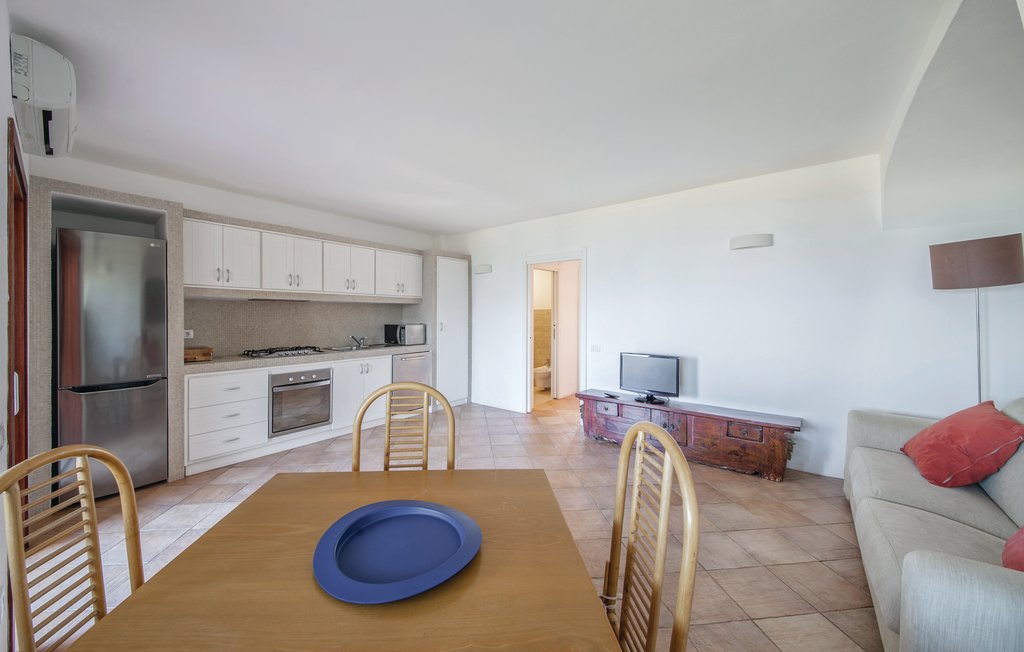 До моря 30 метров До песчаного пляжа 30 метров До города Porto Rotondo 4 километров До аэропорта Olbia 19 километров Апартаменты состоят: - гостиная - столовая - гостиная, совмещенная со столовой - кухня, совмещенная со столовой Спальни 2 - с двуспальной кроватью 1 - с двумя односпальными кроватями 1 - диван-кровать 1 Кол-во ванных комнат 1 - душевая кабина, умывальник, WC - 1 В апартаментах есть: Отопление/охлаждение объекта - Кондиционеры - Электрическое отопление Мультимедиа - ТВ (количество телевизоров) 1 Кухня - Посуда, столовые приборы, проч. - Холодильник - Микроволновая печь - Стиральная машина - Посудомоечная машина - Утюг и гладильная доска - Кофеварка - Электрочайник - Тостер Коммуникации - WI-FI Аксессуары для детей - Детская кроватка по запросу Проживание с домашними животными - по запросу Территория: - Парковка на количество машин 2 - Сад - Терраса - Садовая мебель - Барбекю