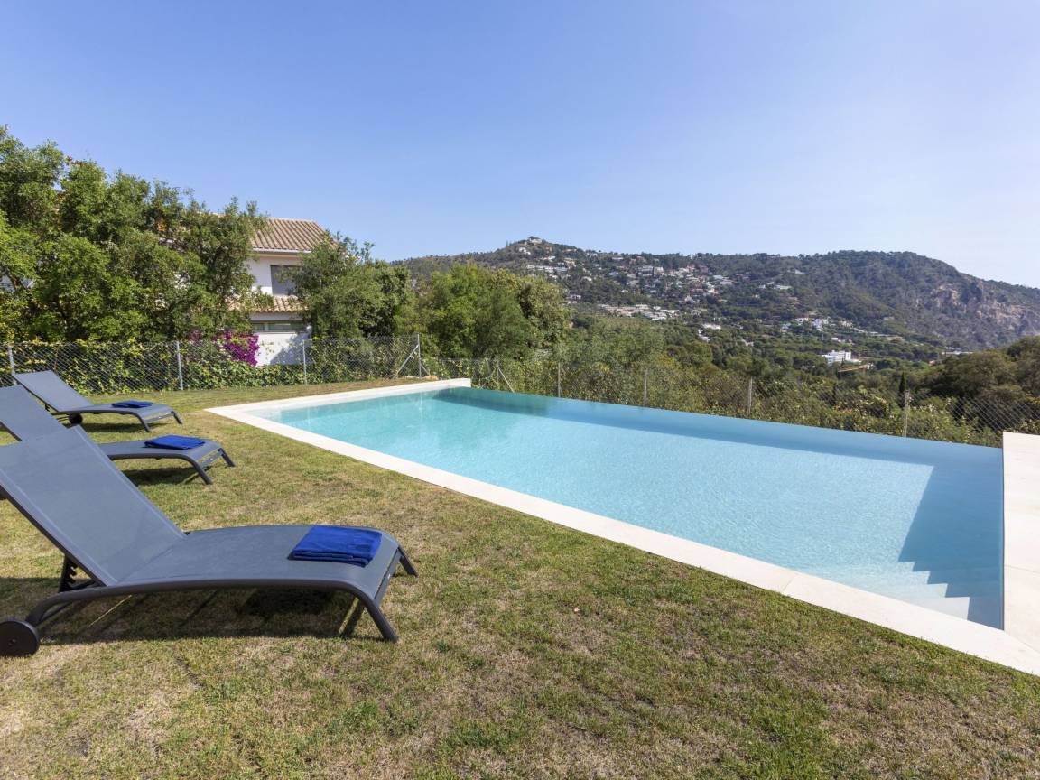 До моря 600 метров До песчаного пляжа 600 метров Рекомендован автомобиль Вилла состоит: - гостиная - столовая - гостиная, совмещенная со столовой - отдельная кухня Спальни 7 - с двуспальной кроватью 5 - с двумя односпальными кроватями 2 Кол-во ванных комнат 6 - душевая кабина, умывальник, WC - 5 - ванна, умывальник, WC - 1 На вилле есть: Отопление/охлаждение объекта - Кондиционеры - Электрическое отопление Мультимедиа - ТВ (количество телевизоров) 6 - Спутниковые каналы - Stereo система - Радио Кухня - Посуда, столовые приборы, проч. - Холодильник - Микроволновая печь - Стиральная машина - Посудомоечная машина - Утюг и гладильная доска - Кофеварка - Электрочайник - Тостер Коммуникации - WI-FI Аксессуары для детей - Детская кроватка - Детский стульчик Охранные системы - Сигнализация Проживание с домашними животными - по запросу Территория: - Сад - Терраса - Садовая мебель - Барбекю - Бассейн - Шезлонги - Зонтик от солнца - Летний душ Краткое описание: Просторная современная вилла с панорамным видом на море и природные ландшафты Коста-Бравы расположена в одном из самых престижных районов Бегура. Дом полностью независимый, огороженный, с частной территорией и бассейном.