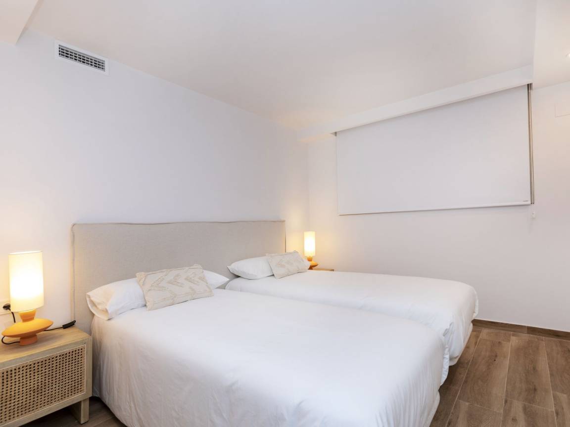 2 спальни с двумя односпальными кроватями и собственными ванными комнатами (душ/WC)