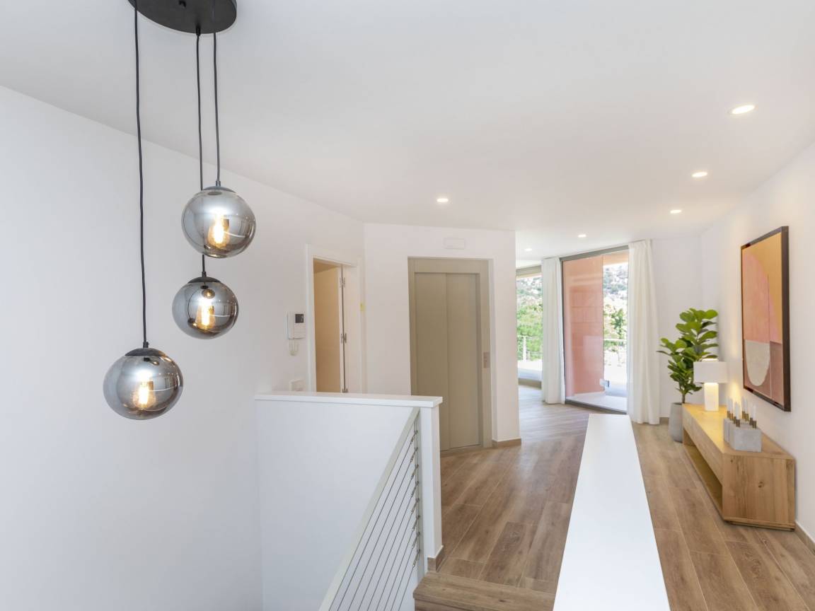 Вилла площадью 550 м² распределена на трёх уровнях и спроектирована так, чтобы максимально использовать естественный свет и морские виды.