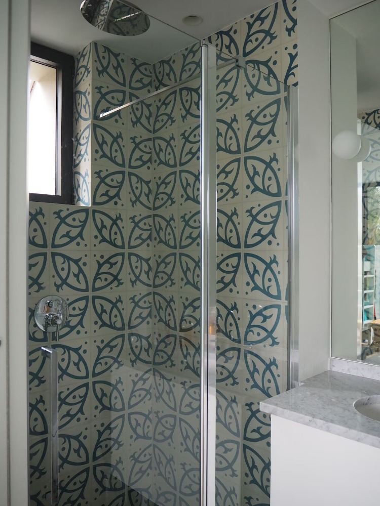 Двухуровневые потолки и окна в гостиной-столовой обеспечивают постоянное естественное освещение. Из кухни и кабинета открывается вид на сад и бассейн, а на первом этаже также находится гостевая душевая/туалетная комната.