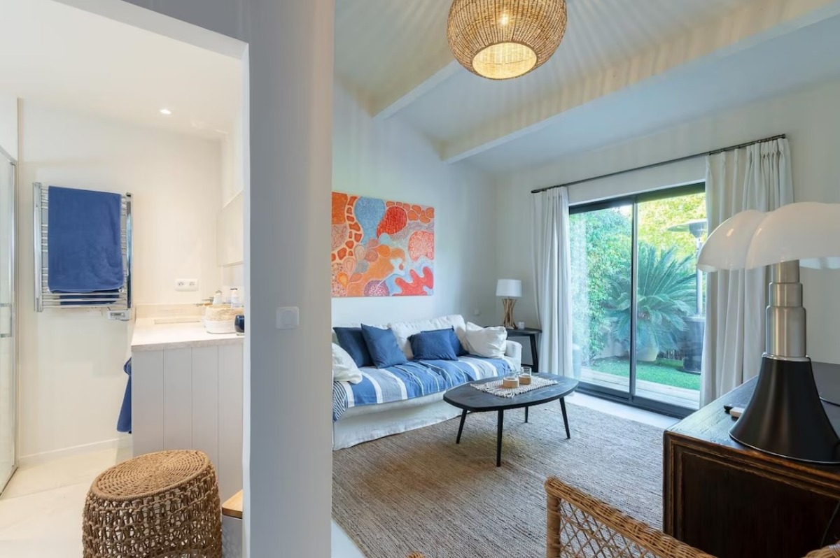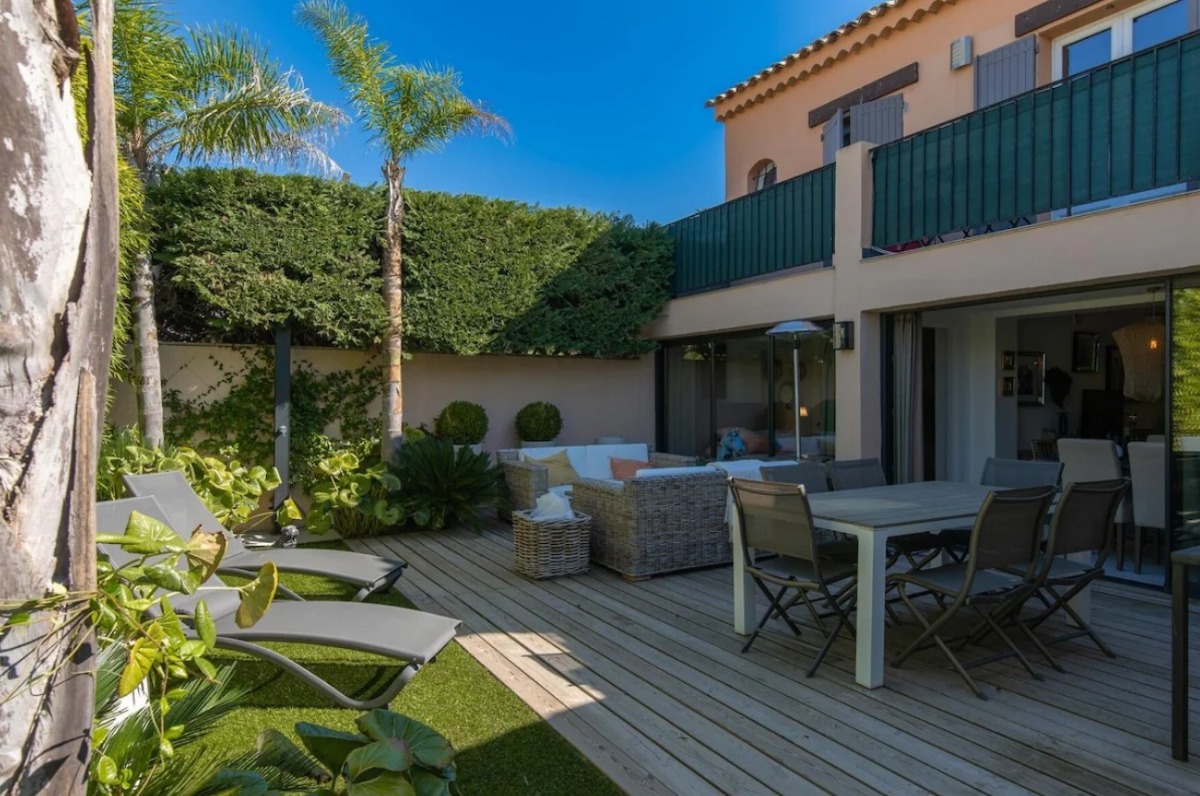 - Шезлонги - Зонтик от солнца - Летний душ Краткое описание: Двухуровневый тауунхаус высокого уровня с 3 спальнями на 6 человек, с садом, террасой и барбекю. Вся инфраструктура в пешей доступности, до ближайшего песчаноого пляжа 550 м.