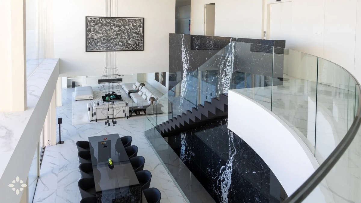 Площадь виллы составляет около 800 м², распределённых на трёх уровнях. Дом оборудован современными системами энергоэффективности и автономного энергопотребления, а также техникой и аудиовизуальным оборудованием премиального уровня.