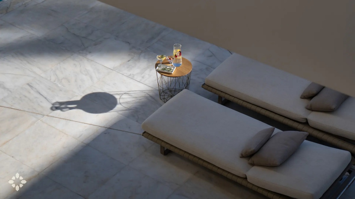 Вокруг бассейна организованы зоны отдыха с шезлонгами, диванами и обеденными столами, где можно наслаждаться трапезами на открытом воздухе.