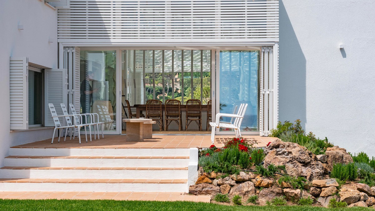 Дом окружён большим садом площадью около 1 800 м² и располагает несколькими зонами отдыха на открытом воздухе. Панорамный бассейн (5 × 10 м, глубина до 2 м) гармонично вписывается в окружающий пейзаж и открывает вид на море. От виллы есть прямой доступ к пляжу и знаменитой прибрежной тропе Camí de Ronda, проходящей вдоль скалистого берега.