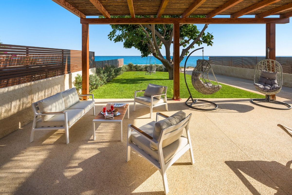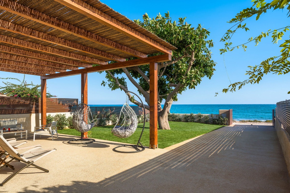 С территории открываются виды на Средиземное море, а просторные террасы и сад создают атмосферу неспешного отдыха у воды.