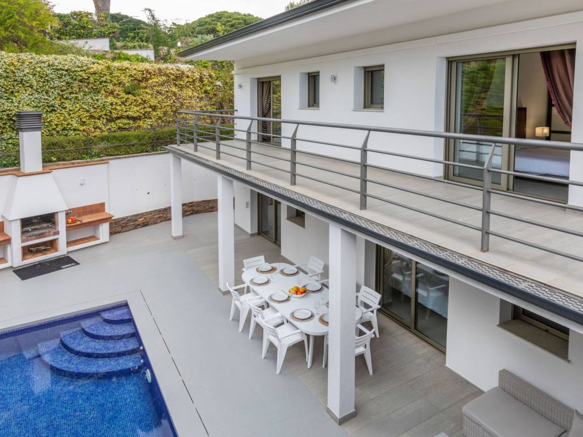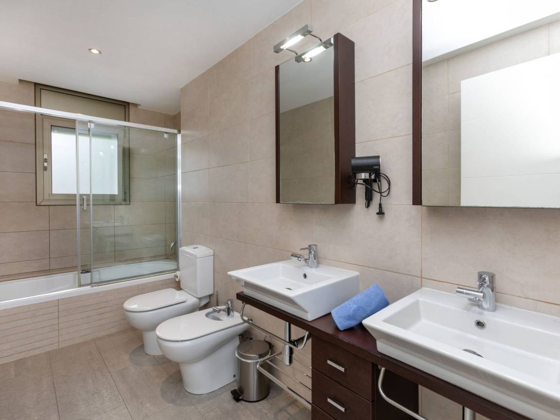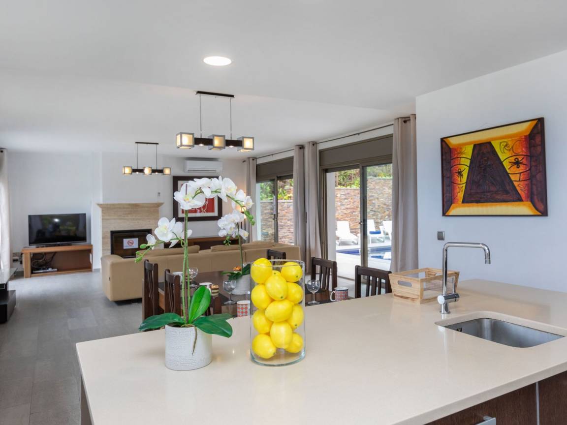 До моря 1300 метров До песчаного пляжа 1300 метров До магазина 1200 метров До ресторана 800 метров До города Lloret de Mar 3 километров До аэропорта Barcelona Airport 34 километров Рекомендован автомобиль Вилла состоит: - гостиная - столовая - гостиная, совмещенная со столовой - кухня, совмещенная со столовой Спальни 4 - с двуспальной кроватью 4 Кол-во ванных комнат 2 - душевая кабина, умывальник, WC - 1 - ванна, умывальник, WC - 1 На вилле есть: Отопление/охлаждение объекта - Кондиционеры - Электрическое отопление Мультимедиа - ТВ (количество телевизоров) 2 - Спутниковые каналы - Stereo система - Радио Кухня - Посуда, столовые приборы, проч. - Холодильник - Микроволновая печь - Стиральная машина - Посудомоечная машина - Утюг и гладильная доска - Кофеварка - Электрочайник - Тостер Коммуникации - WI-FI Аксессуары для детей - Детская кроватка - Детский стульчик Охранные системы - Сигнализация Проживание с домашними животными - по запросу Территория: - Парковка на количество машин 2 - Гараж на количество машин 2 - Сад - Терраса - Садовая мебель - Барбекю - Бассейн - Шезлонги - Зонтик от солнца - Летний душ Краткое описание: Современная вилла с просторной планировкой и открытым видом на море, расположенная в спокойной жилой зоне всего в нескольких минутах от центра.