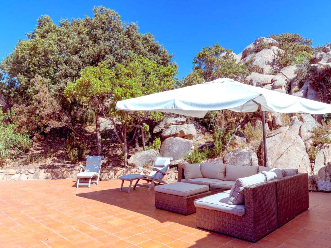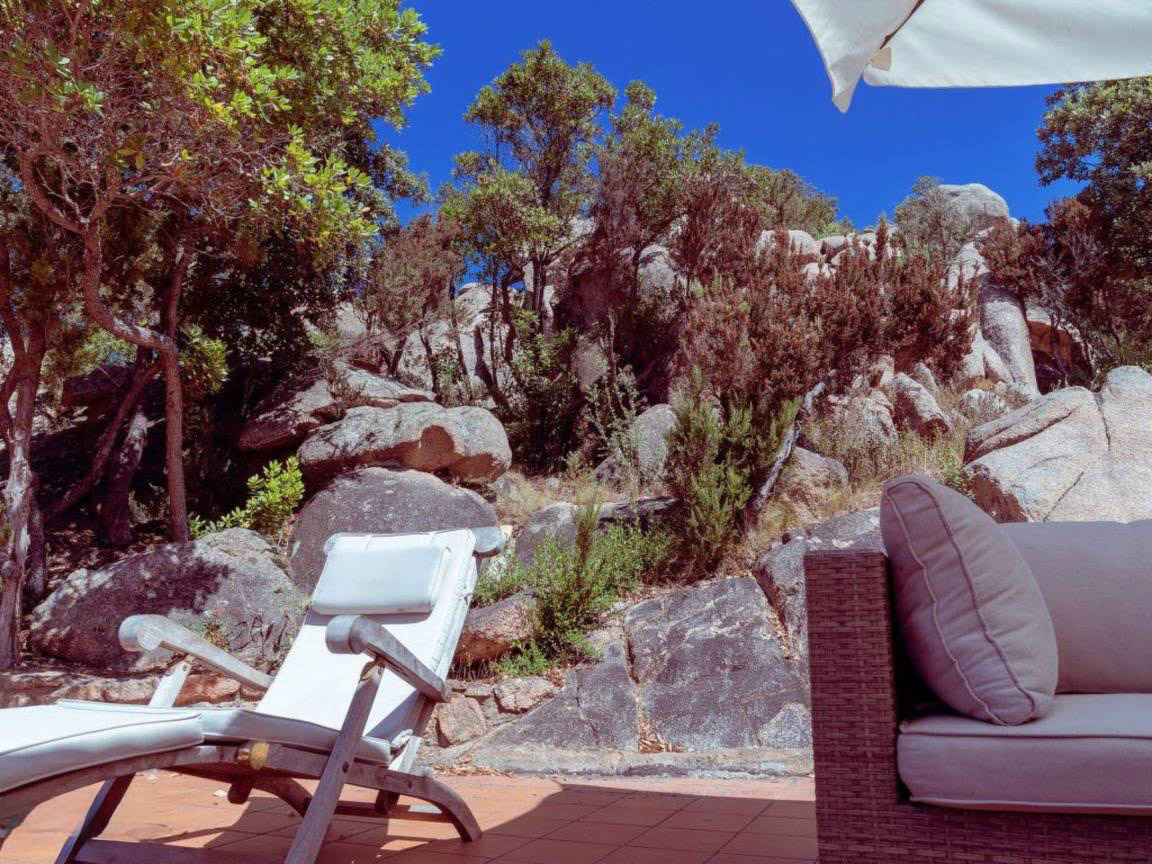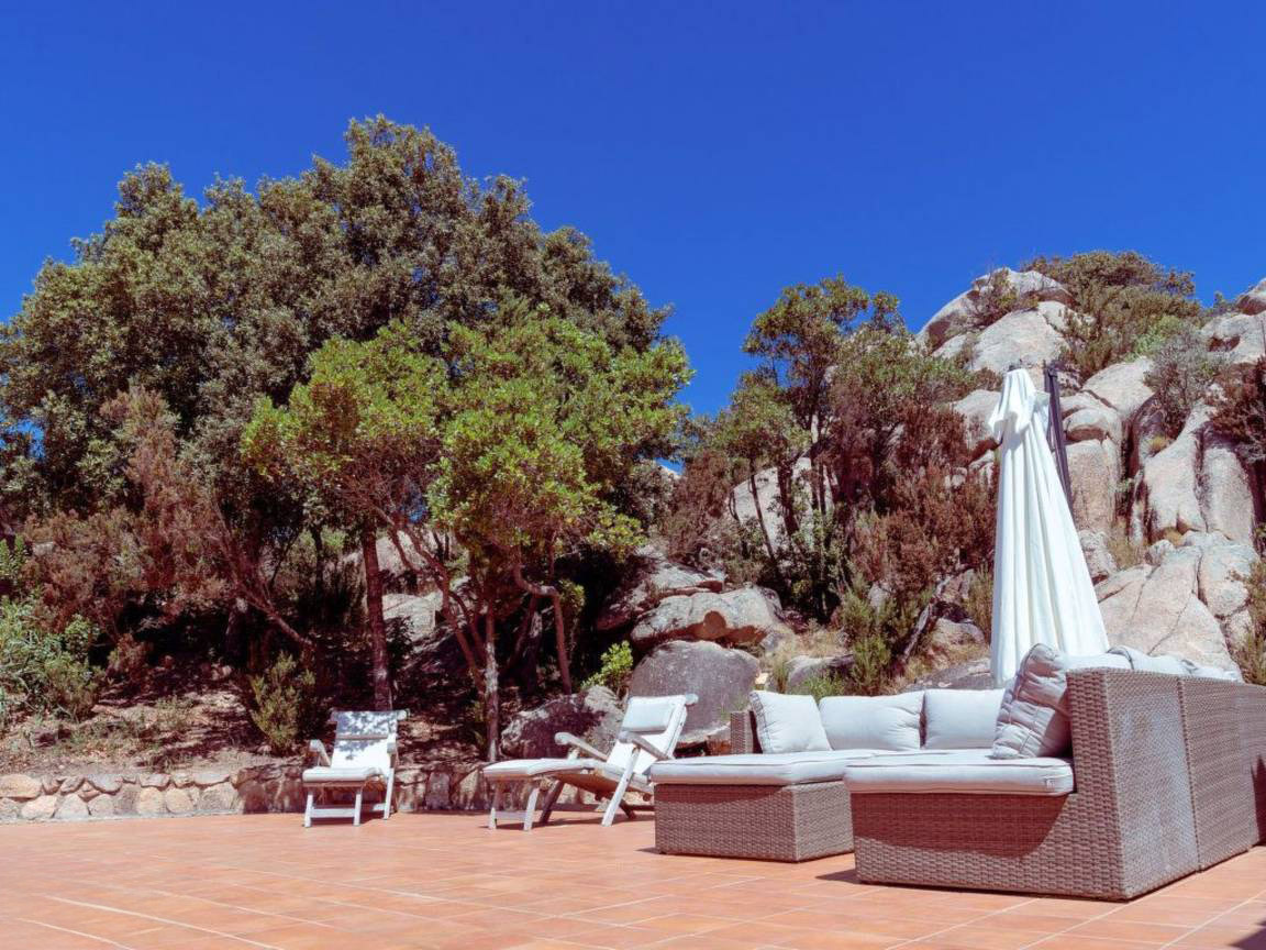 - Шезлонги - Зонтик от солнца - Летний душ Краткое описание: Дом среди гранитных скал с открытым видом на море и залив Сан-Теодоро. Спокойное, зелёное место без дорог рядом — ощущение уединения, но при этом всё необходимое в доступности.